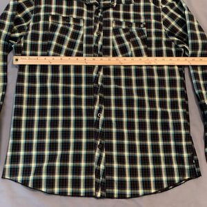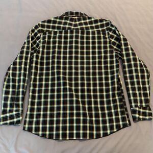 Item: Mens long sleeve button down shirt with plaid pattern.
