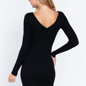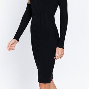 Deep Double V-neck Twist Detail Sweater Stretch Midi Dress in Black or Pink