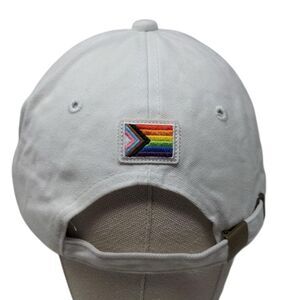 Unisex Deep Eddy Vodka Ball Cap from Austin, Texas. LGBTQ+ Pride Rainbow Slideback Hat in classic white. Perfect like new condition.