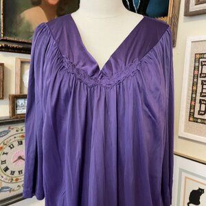 This purple nylon nightgown by Exquisite Form offers a soft, elegant feel. Its flowing design ensures comfort and a touch of retro charm.