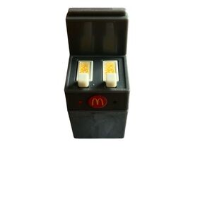 Compact gray holder with yellow fry design. Iconic McDonald's logo.