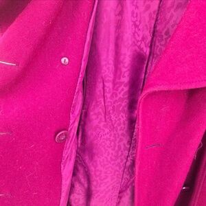 Gorgeous deep pink fuchsia color short coat double breasted front, flares out , extra button attached inside that can be put on Button missing on front. Medium