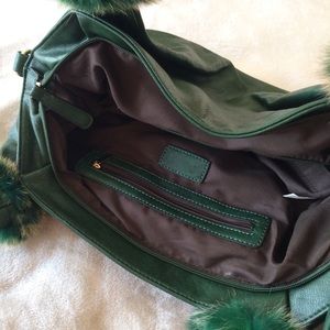 Deep Green Purse with Real Fur Accents