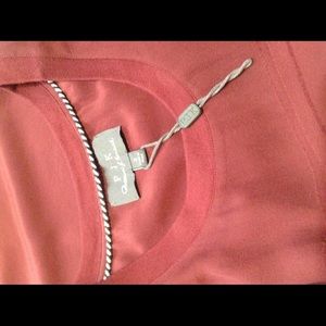 @ckrose17 - Hi! I took this shirt to the dry cleaners, thinking that they could help me better identify the fabric. They said that the shirt is entirely silk, in their opinion. Also, the information from PJK that I've found online indicates that it is 100% silk. I think that maybe the tag was printed incorrectly; that is the only explanation that I can imagine. I hope that this information helps and let me know if you've got any questions. Thanks!
