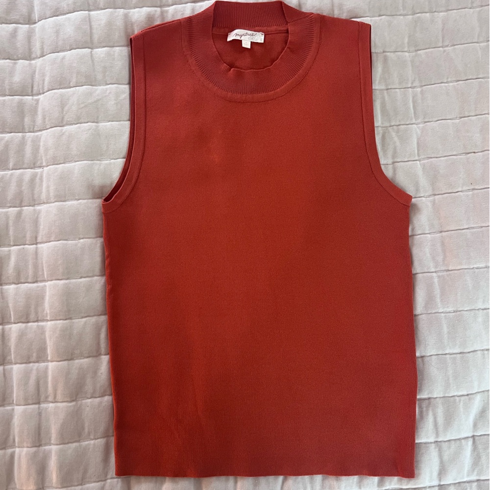 Deep orange sleeveless shell with a ribbed crewneck. Very good condition Size L - fits 36-38” busy
