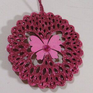 Deep Pink Round Butterfly Laser Cut Wooden Ornament (Double Sided) Hangs