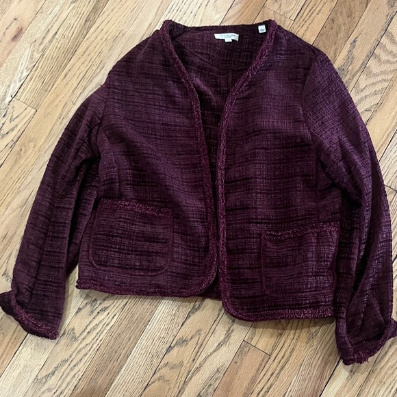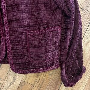 Gorgeous textured jacket/blazer from max studio London. It’s a soft velvety fabric in a deep plum/burgundy color. Size large
