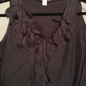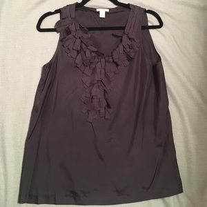 Beautiful deep plum colored 100% silk JCrew sleeveless shirt. Ruffles at v-neck.