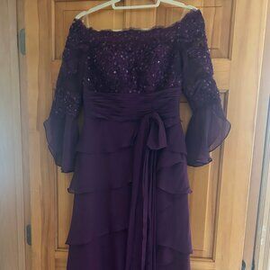 Off Shoulder, Lace top with ruffle bottom, beautiful bow waistband. Size 4. Never Worn.