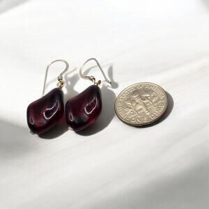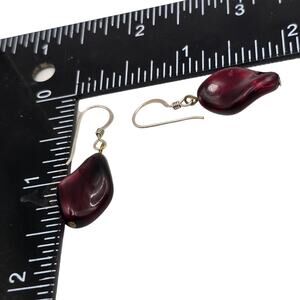 Deep Red 925 Earrings Swirled Twisted Bead Sterling Dangle Marked Artisan Style