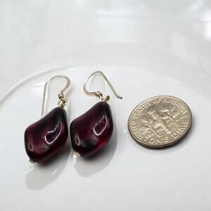 Deep Red 925 Earrings Swirled Twisted Bead Sterling Dangle Marked Artisan Style.