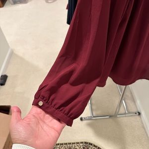 Blouse has half zipper on chest, buttons on the 3/4 sleeve arm and warm color. Prefect for the fall and winter seasons