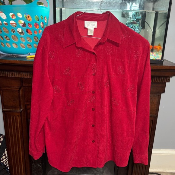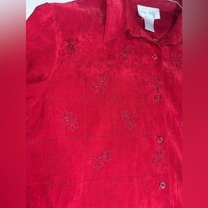Deep Red Embroidered Button-Down Shirt