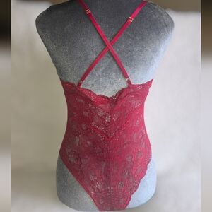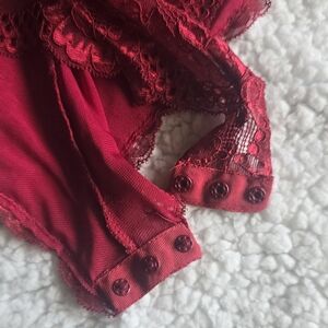 This stunning red lace bodysuit is perfect for adding a touch of elegance to your intimate wear collection. Crafted with intricate lace detailing, it offers both comfort and style.