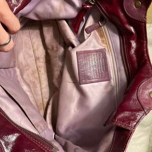 Beautiful Burgundy leather vintage Coach tote bag with brass hardware. Some light staining on the inside. #leatherbag
