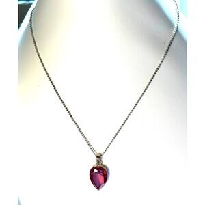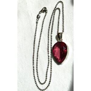 Deep Red Pink Translucent Teardrop Pendant on Sterling Ball Bead Chain 18”