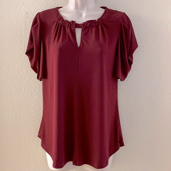 LAST CHANCE: PULLED FRIDAY 19th- Cute Deep Red top with pretty drape sleeves not really cap they drape.
