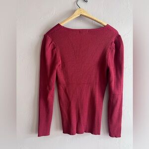 Elevate your wardrobe with this deep red V-neck ribbed top. Perfect for any occasion, this stylish piece offers both comfort and elegance.
