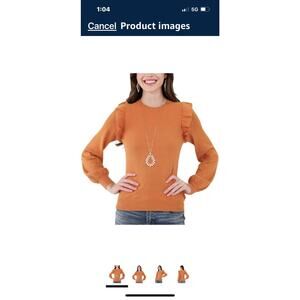 Deep Self Sweater Womens Medium Ruffled Shoulder Peasant Sleeve Ribbed Small