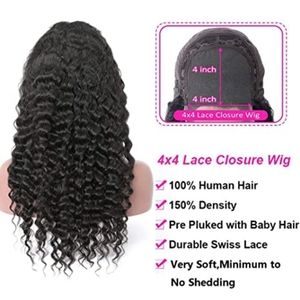 Deep Wave 4x4 closure wig Human Hair Deep Wave Lace Front wigs