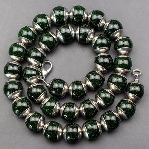 Large stone bead necklace, bold brutalist goldstone necklace for women