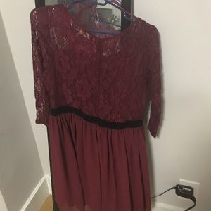 Black velvet across the waist, lace top and back, flowy at the bottom. Worn one time