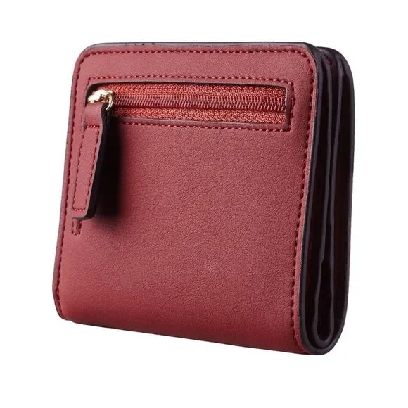 Deep Red Leather Compact Wallet