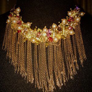 Amazingly beautiful with stones and rose gold fringe detailing. Will compliment any outfit.