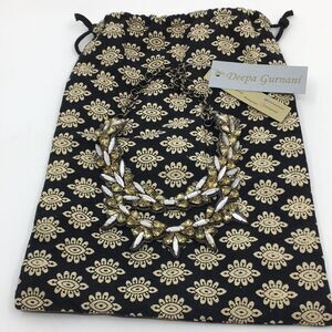 Deepa Garnini new with tags clear and champagne yellowish rhinestone with dark silver tone gunmetal color hardware. Suede backing on necklace. Includes original dustbag! Stunning necklace! 16” necklace with a 2” extender. Could be worn shorter due to link style in necklace. Handmade beautiful Limited Edition piece!