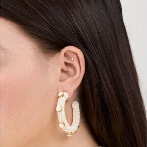 Color Ivory - length 1.5" - enamel embellishments - all over beading - brass - post closure - NWT