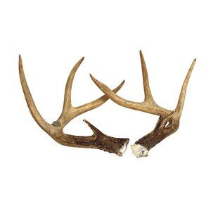 Antlers show natural wear with some rough edges and color variations.