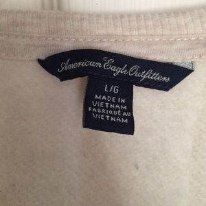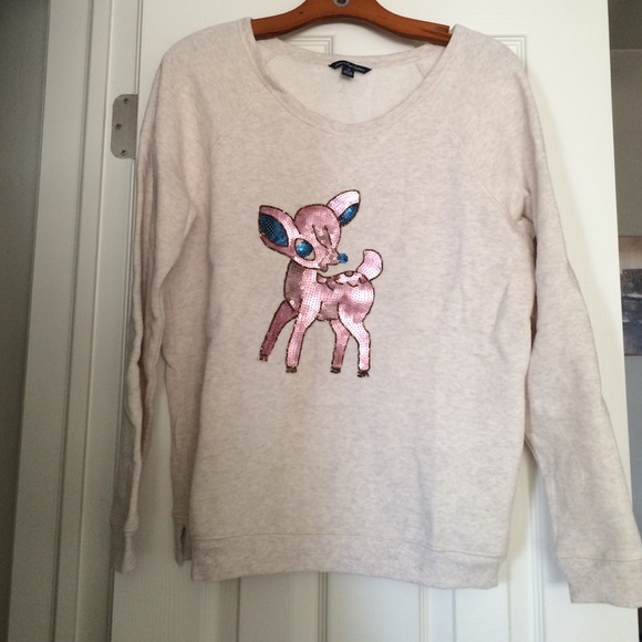 Oatmeal colored sweater with a pink tan and blue deer appliqué on the front. Worn one time.