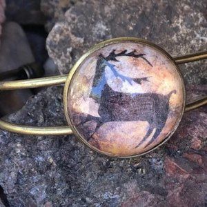 Hand Crafted brass deer petroglyph bracelet. Perfect gift. Adjustable.