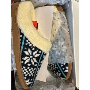 Deer Stags Mens Lodge Round Toe Slip on Slippers, Navy/White Knit, Size S, NIB