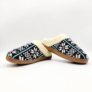 Deer Stags Men's Navy Fair Isle Knit Faux Fur Lodge Slipper Size L / 11-12