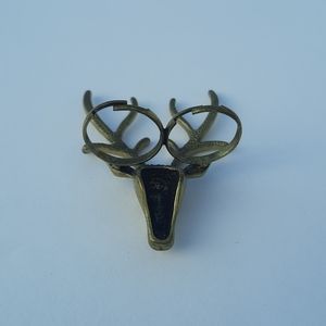 Brass tone, deer with antlers, double finger, adjustable, ring