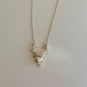 This elegant gold necklace features a beautifully crafted deer pendant. Perfect for adding a touch of sophistication to any outfit.