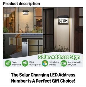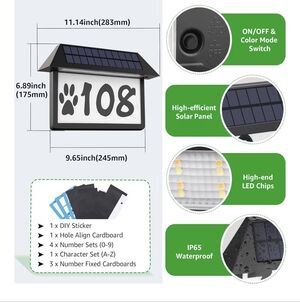 New Deerdance Solar Address Sign, comes with screws for hanging, and black adhesive numbers.