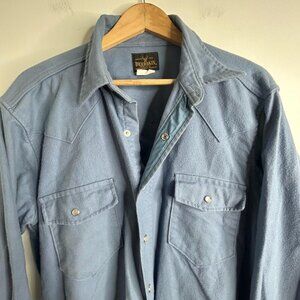 Deerskin Shirt Jacket Mens Large Blue Western Snap Front Made in USA Pockets