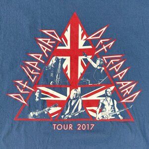Def Leppard 2017 Concert Band Tour T-Shirt Sz XL Blue Cotton UK Graphic 80s 90s