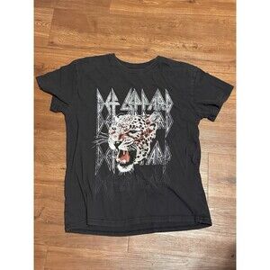 Def Leppard Band T-Shirt Reprint Black Leopard Graphic Tee Rock Tour Concert XL