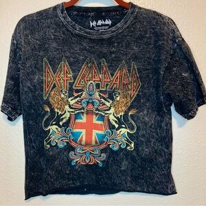 Def Leppard Cropped Acid Washed Band Tee Shirt Rock Of Ages Black Small/Medium