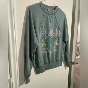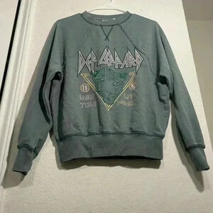 Def Leppard Distressed Teal Licensed Reto Vintage Inspired Crewneck Size XS