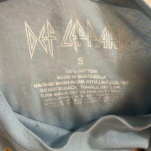 Blue Def Leppard graphic t-shirt featuring a bold leopard design.