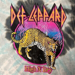 Def Leppard High N Dry Tie Dye Tshirt Unisex Medium Short Sleeve Black Blue EUC