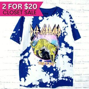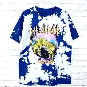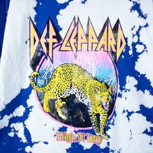 Def Leppard leopard blue and white tie dye crewneck short half sleeve licensed merch band t shirt.