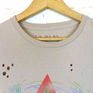 Pre-owned condition, Def Leppard Love Bites Graphic T-Shirt Women M/L Beige Distressed Goodie Two Sleeves