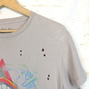 Notes: Some faint stain / discoloration on front shoulder area, one spot on lower area of graphic and one on the back. View photos.