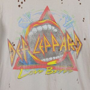 Def Leppard Love Bites Graphic Shirt Women M/L Beige Distress Goodie Two Sleeves