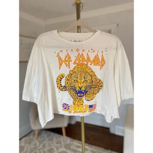Description: This cropped distressed Def Leppard band tee features a bold graphic from their 1983 Pyromania tour. Made of 100% cotton, it has a relaxed fit and an effortlessly edgy vibe.